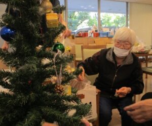 クリスマスツリーにご利用者様が飾りつけを行って下さいました