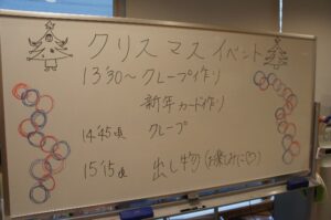 お正月用のオリジナルメッセージカードやおやつのクレープ作りをされ、ご利用者様も楽しそうに行われていました。