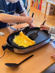 白身がゆっくりと固まっていく様子をみんなで見守りながら、ふんわりと美味しそうな目玉焼きが完成しました👏