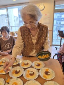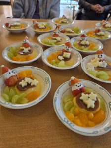 いちごのサンタ🧑🎄が乗ったデザートは、みんなで盛り付けしました✨️