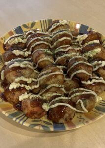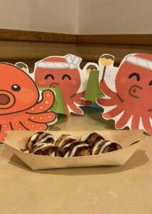たこ焼きを舟皿に盛ったり雰囲気も楽しんでもらいました